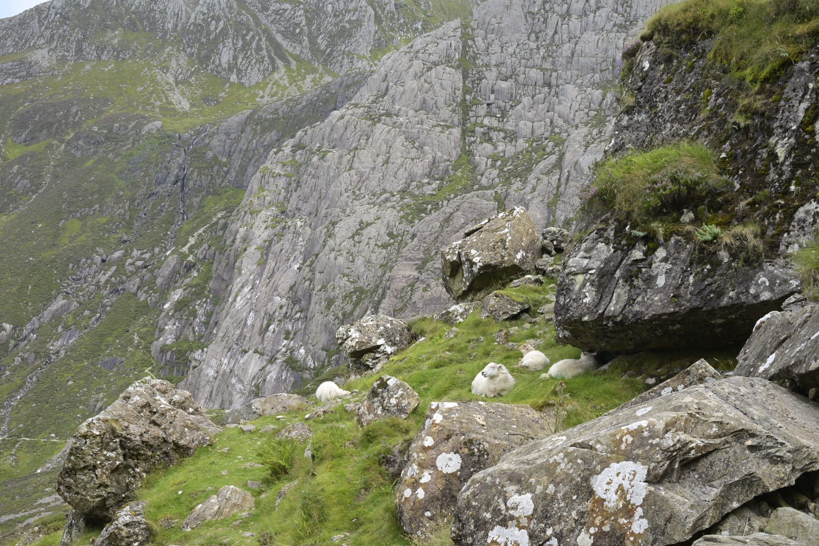 Superata la missione Aber Falls, risaliamo in auto per raggiungere Cwm Idwal (no, non è un errore di battitura, e no, non avete problemi alla vista). Un lago incastonato tra montagne che custodisce una leggenda antichissima: pare che il giovane Idwal fu gettato nelle acque dai nemici del padre, e da allora nessun uccello osa volare sopra il lago. Gli unici che osano sono gli escursionisti ignari e le pecore locali, che ormai ci fanno corsi di alpinismo.