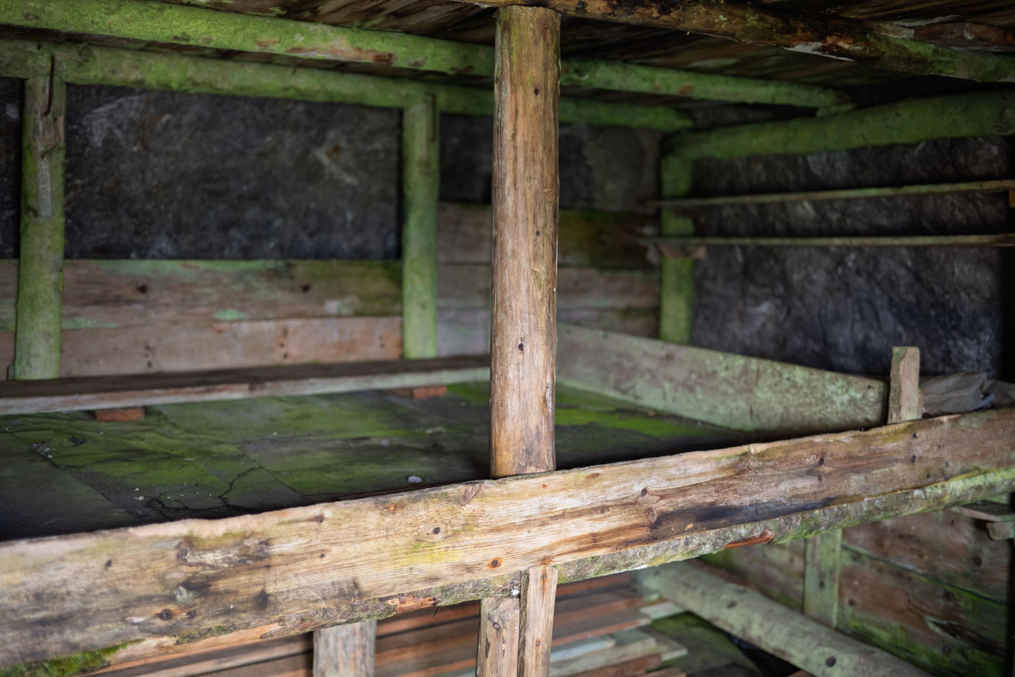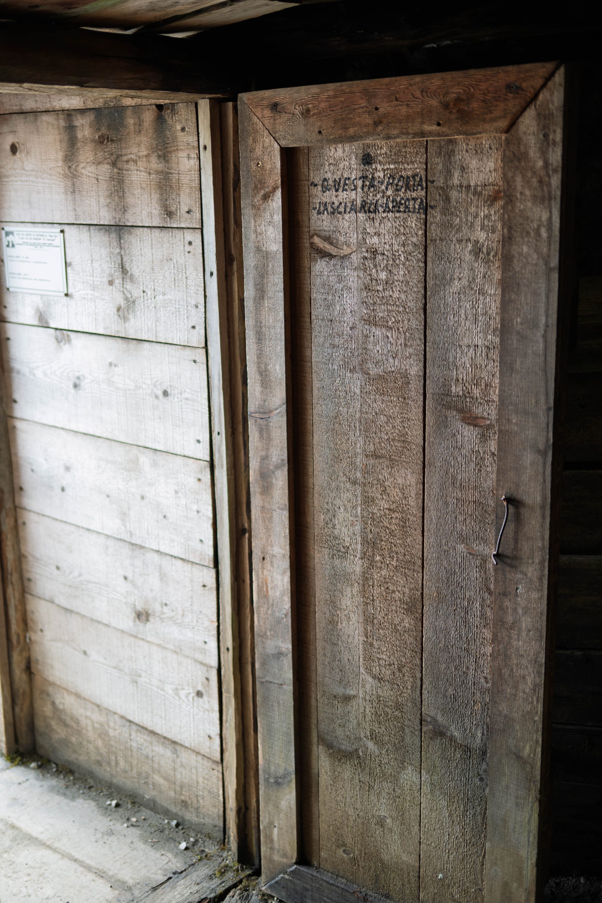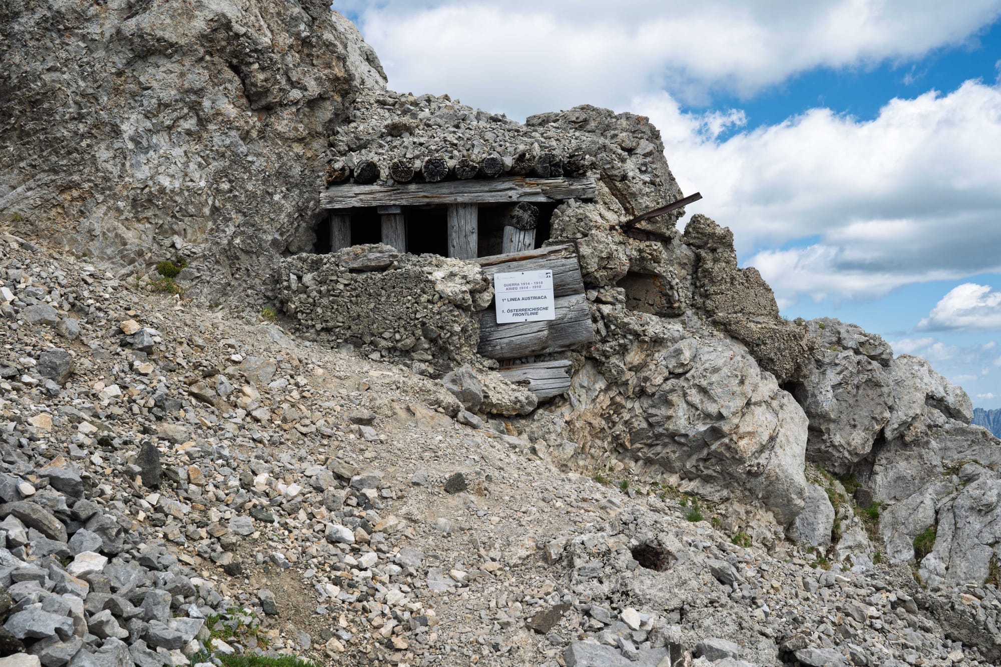 Una piccola costruzione in legno incavata nella roccia dava rifugio a 12 ufficiali austriaci; il passare del tempo è stato clemente: travi ed aselle sono quelle originali... Stiamo respirando la stessa aria di più di 100 anni fa.