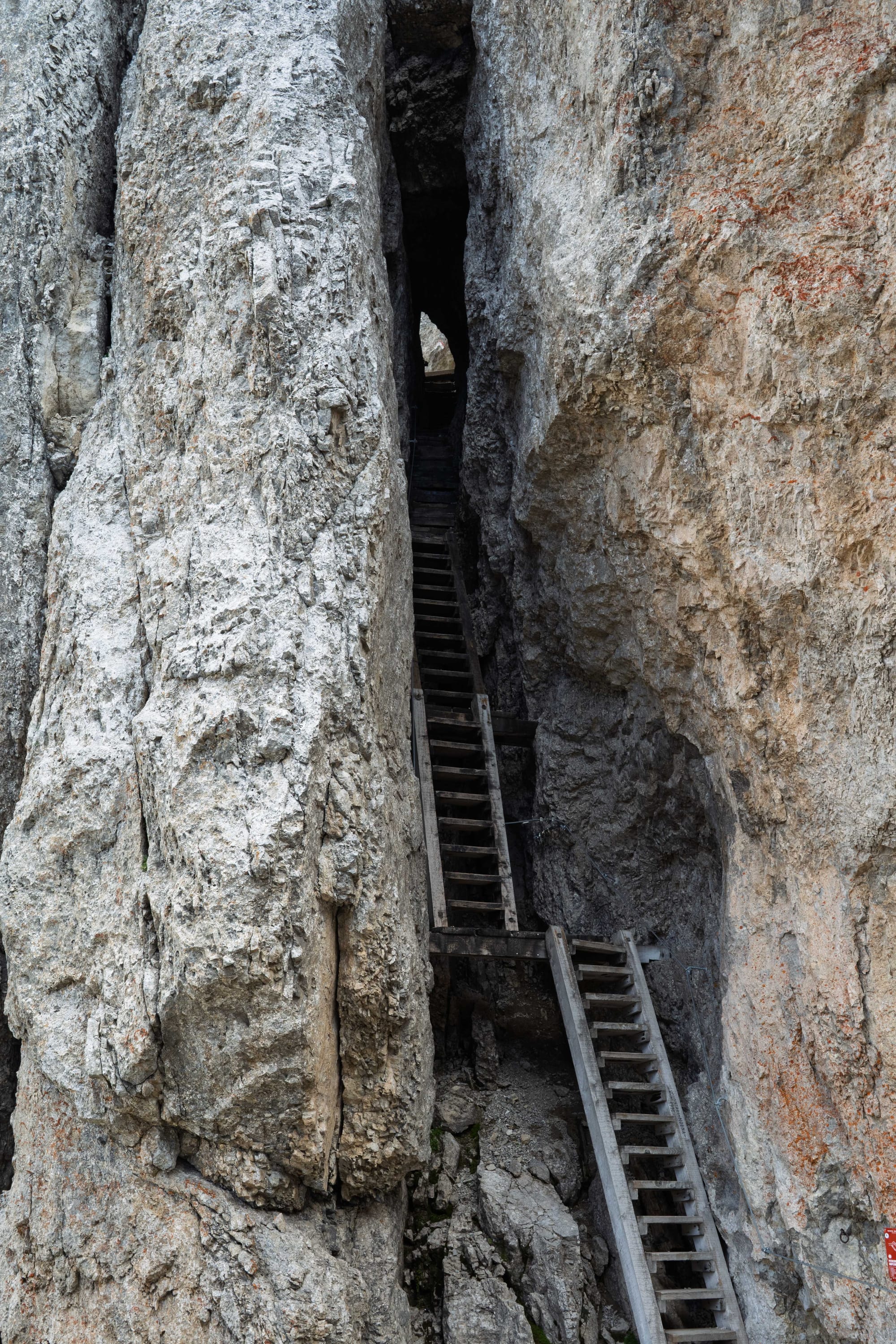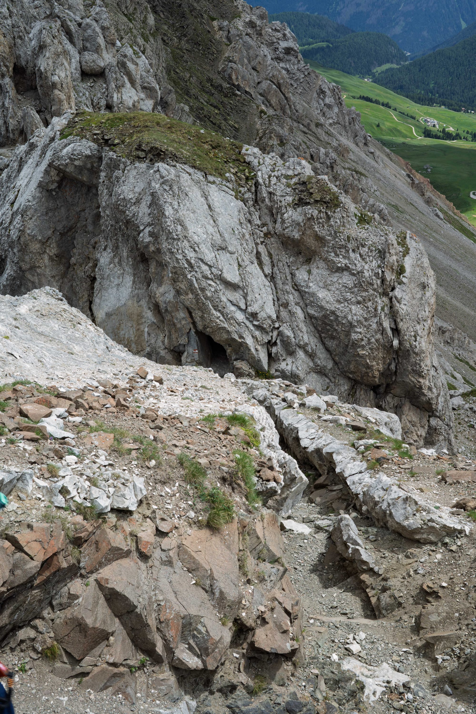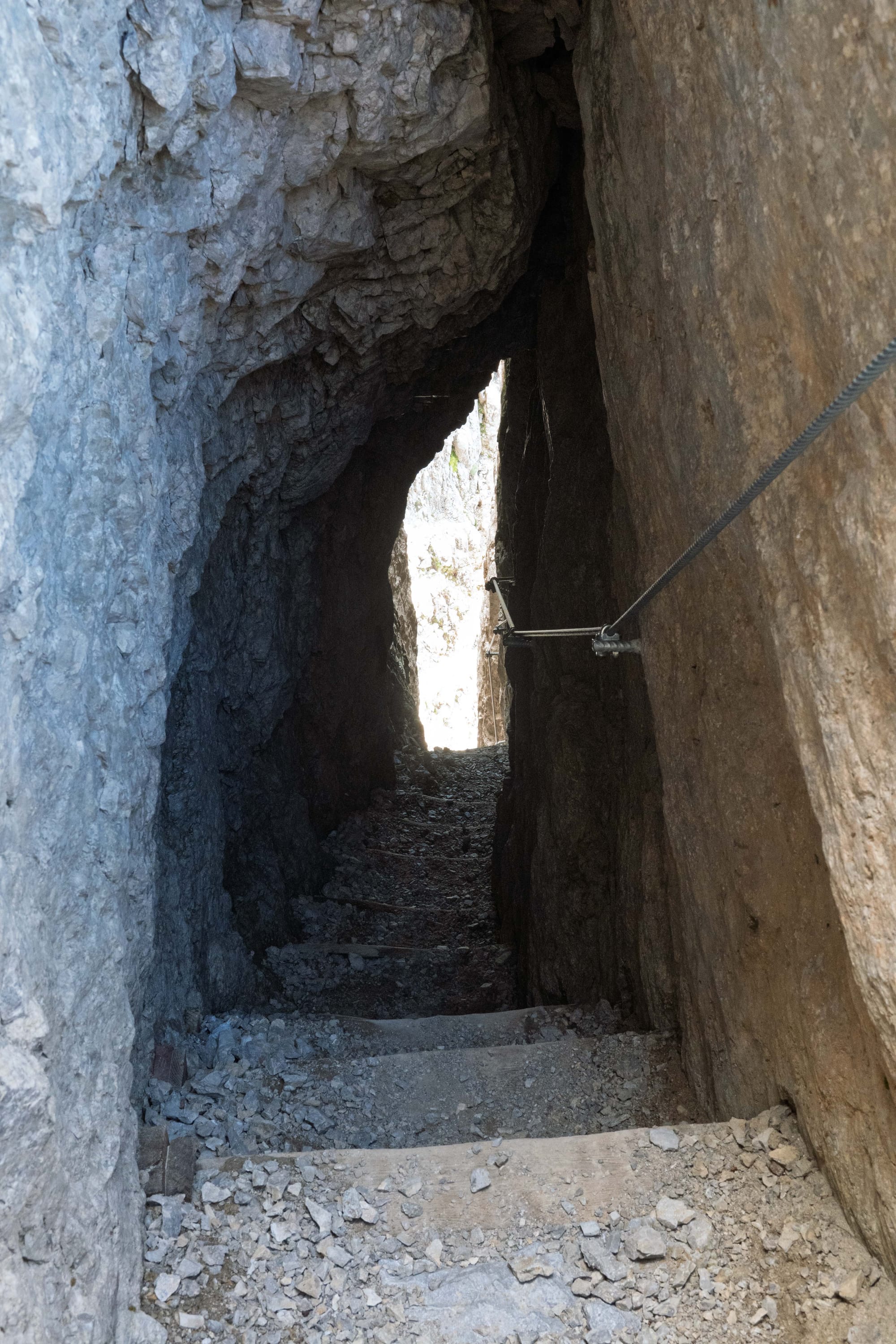 - Giunti a 2 664 m, la ferrata lascia spazio a trincee italiane scavate nella roccia.