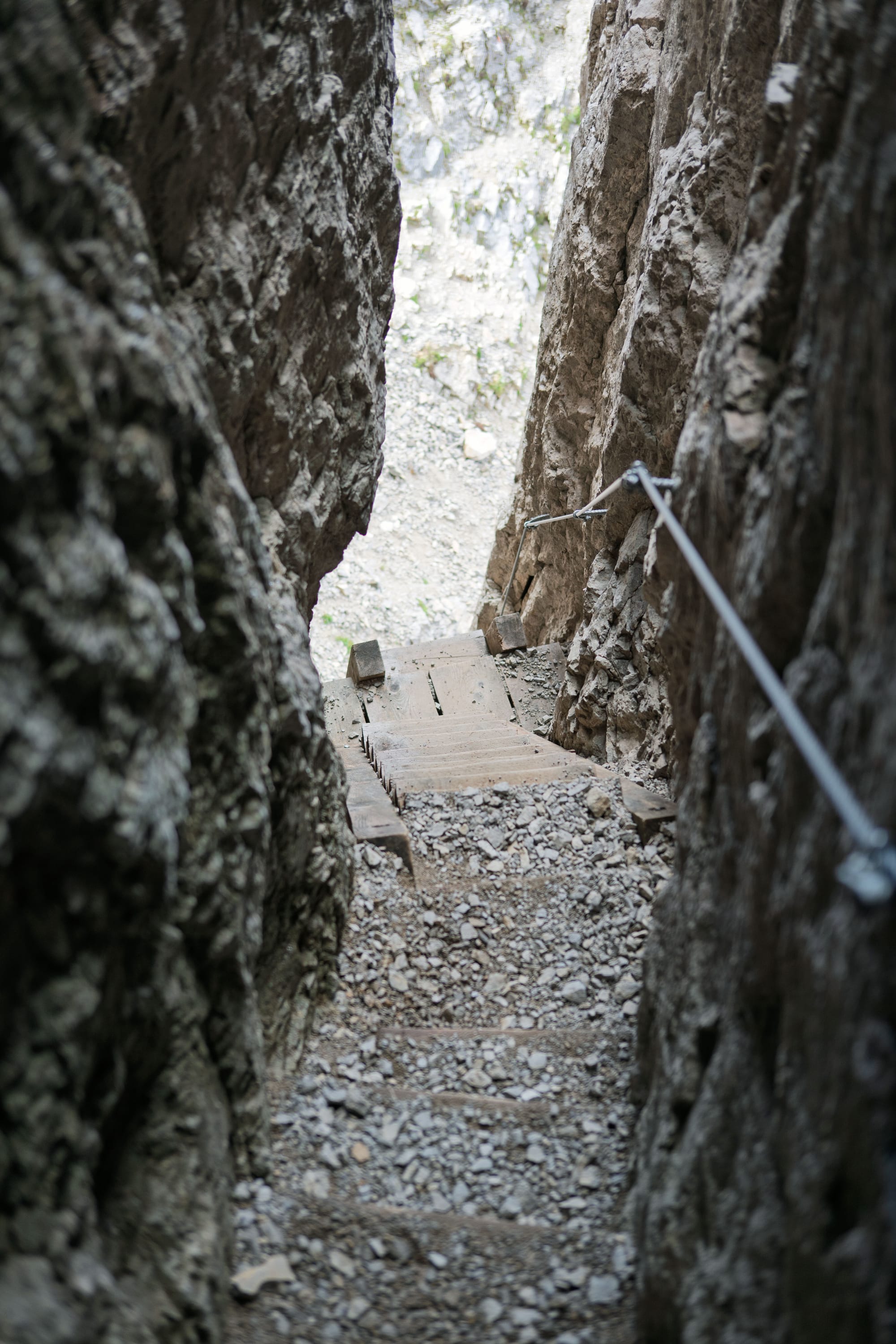 Arriviamo al primo ponte di legno: sospeso nella roccia, invitante e – ammettiamolo – altamente instagrammabile. Battute sul mettere mezza rotula fuori dal cavo ironizzano sull’"alta cucina nervosa".