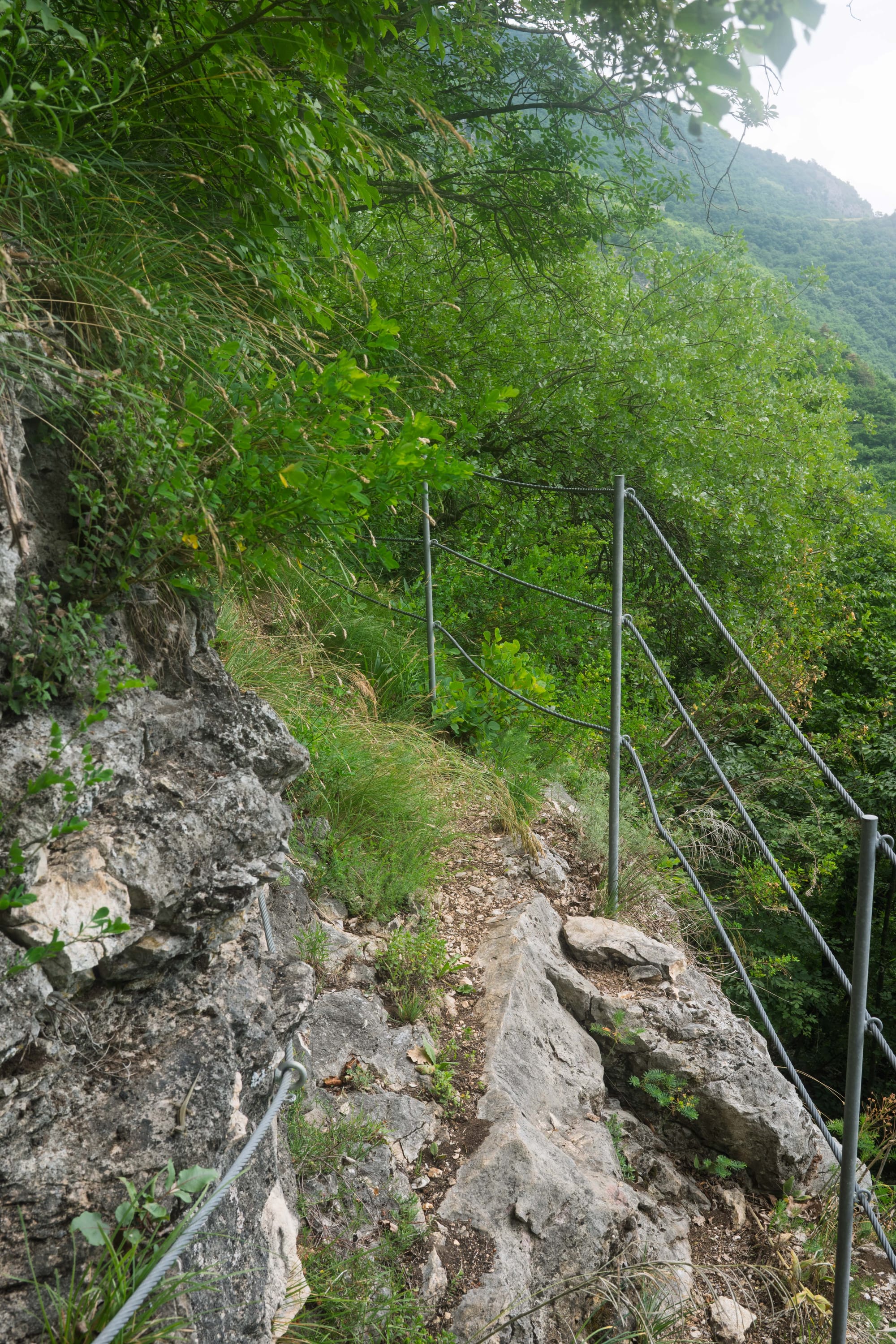 Scendere è più facile, dicono. Ed è vero... ma solo se sei un camoscio. Il sentiero in discesa verso Mori è ripido e richiede attenzione: il terreno è a tratti sassoso, a tratti umido, e sempre pronto a testare l’aderenza delle tue suole.