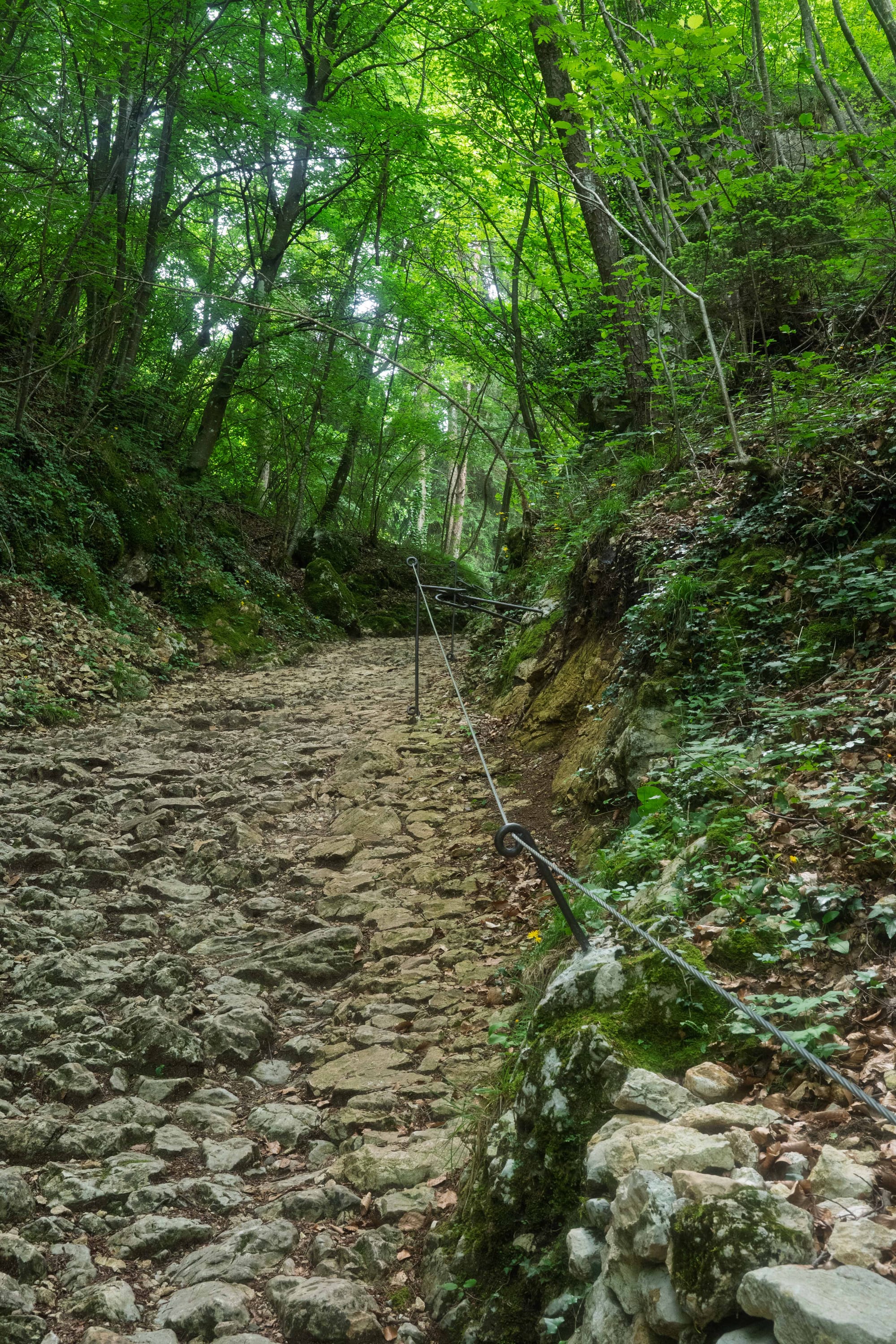 Quando si lascia alle spalle l’ultima postazione fortificata del Nagià Grom, qualcosa cambia. Non è solo che si inizia a scendere e le ginocchia chiedono pietà: è che lo sguardo si apre, il bosco si fa meno fitto, e la valle laggiù – finora silenziosa protagonista – si mostra in tutta la sua ampiezza.