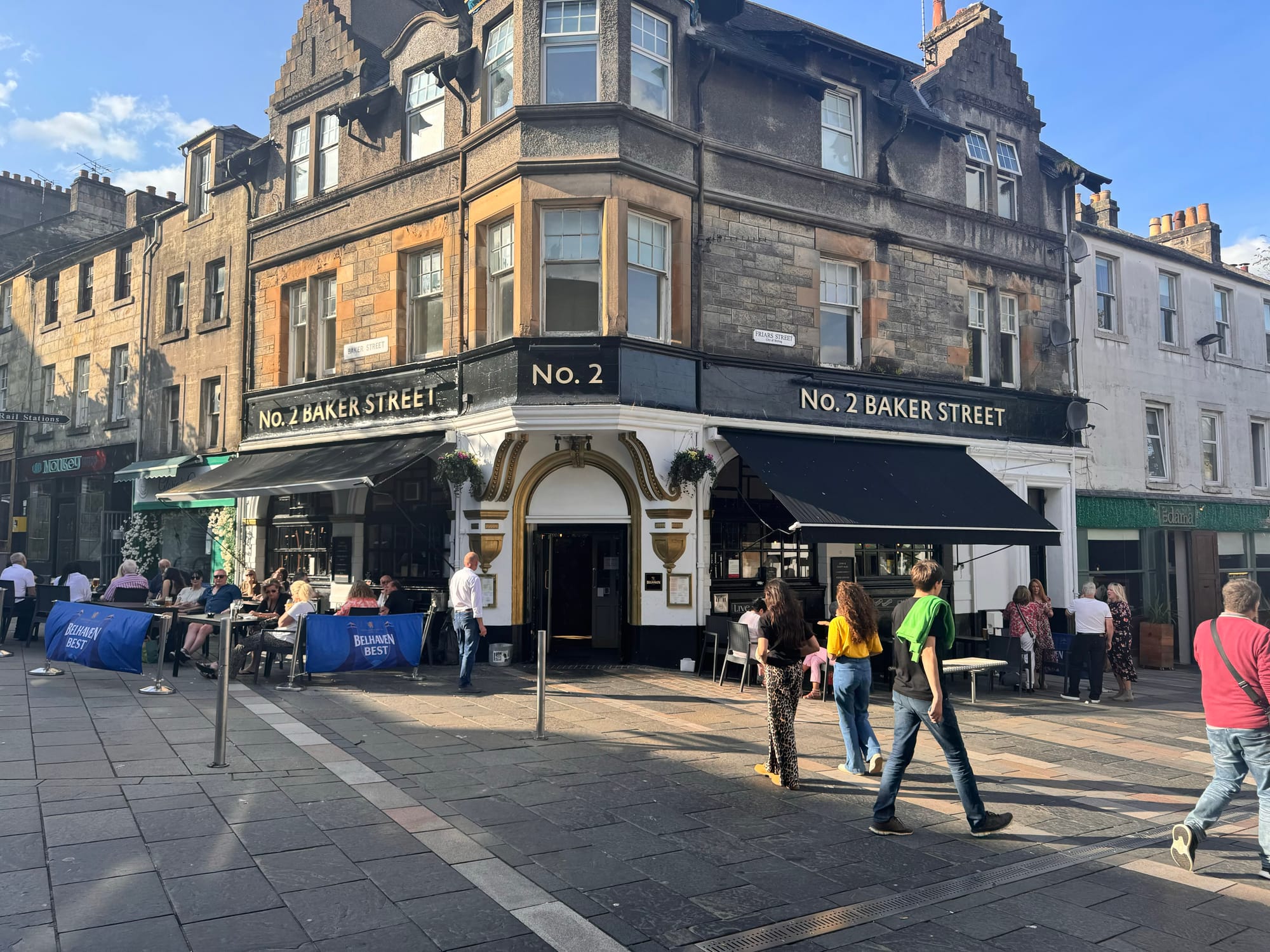 Ma prima di qualsiasi cosa ci meritiamo un aperitivo al N°2 di Baker Sreet. Meraviglioso Pub scozzese nel centro di Stirling... dove fiumi di birra scorrono sulle note della musica dal vivo, che trascina gli avventori in danze e canti. Il Pub è pieno zeppo ma veniamo invitati a condividere un tavolo con un uomo dalle vesti e dalle fattezze particolari (dalla bocca spunta un unico e solitario dente che nella sua fierezza indica il cielo); è sicuramente uno degli idoli locali, tutti lo conosco e tutti lo salutano per poi guardarci incuriositi cercando di capire chi possano essere quei quattro seduti al tavolaccio con il loro Deus. Colui che non ha nome ci intrattiene in una lingua che all'inizio immaginiamo essere un dialetto elfico (e questo ci galvanizza, la nostra immaginazione si espande al punto da preparaci ad un invito nella foresta incantata a banchettare con pozioni magiche e animali mitologici; non credo di averlo mai confessato ad alcuno ma uno dei miei sogni proibiti è poter assaggiare un fish and chips di sirena o un hotdog di unicorno), ma, dopo una trentina di minuti, con stupita sorpresa ci rendiamo conto essere solo un impasto di inglese, dialetto scozzese, birra e parecchi bicchieri di Scotch.