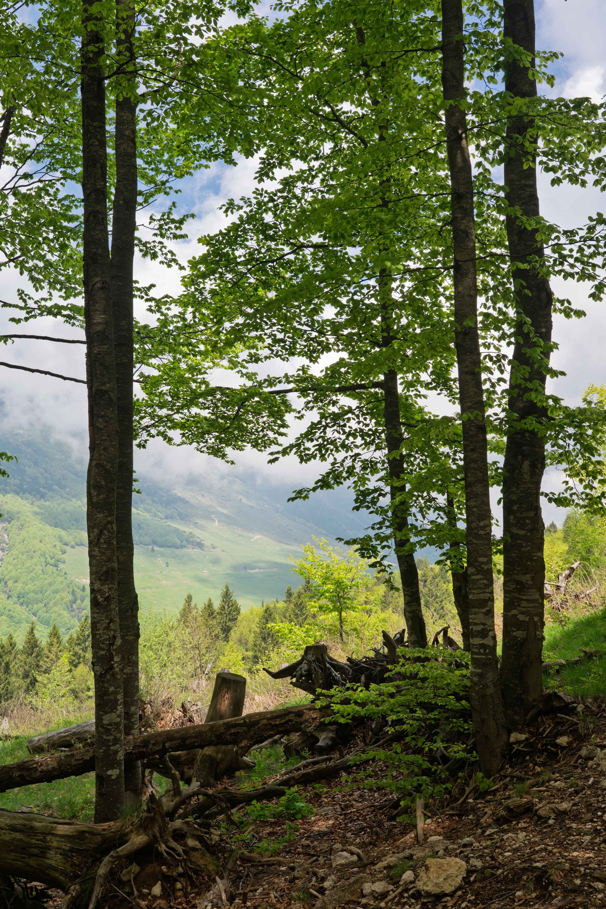 A un certo punto, il sentiero ci regala il suo colpo di teatro: nebbia. Densa, uniforme, avvolgente. In realtà eravamo sul Baldo, ma il mood era da fiordi norvegesi. L’effetto è magnifico: ogni abete sembra un attore in attesa del suo monologo, e il panorama diventa una tela bianca da immaginare.