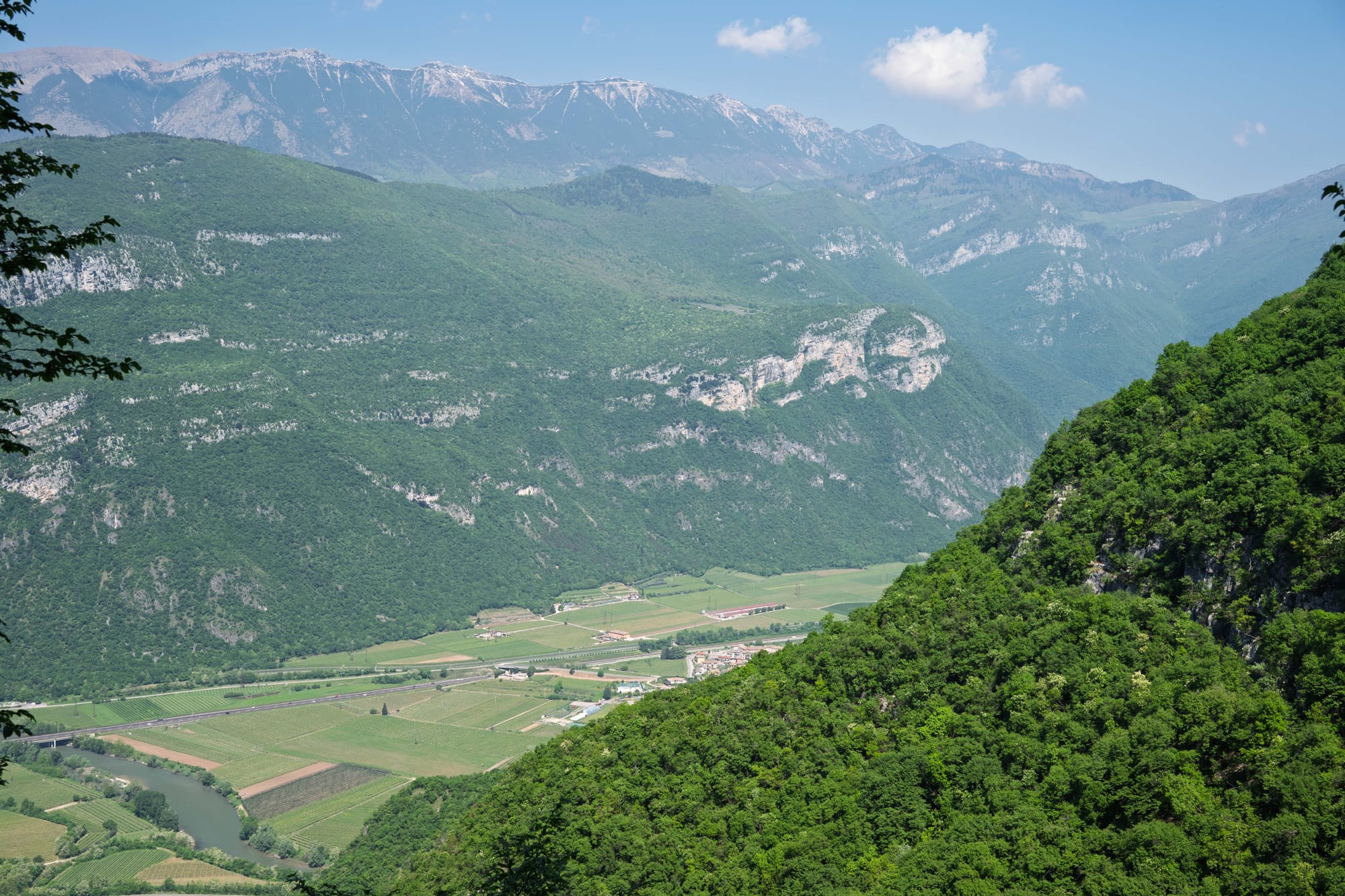 Il bello del Sentiero Fasoli è che ti accompagna con garbo, ma senza annoiarti. Ogni curva regala un panorama nuovo: terrazze coltivate, boschi fitti, il fiume Adige che serpeggia là in basso come un nastro d’argento, e poi laggiù, case minuscole che sembrano casette di un plastico ferroviario. E quando pensi di aver visto il meglio, boom: ti si apre la vista sulla Valdadige. Ti fermi, tiri un sospiro, fai la foto di rito (o venti) e ti chiedi perché mai hai aspettato tanto a venire da queste parti.