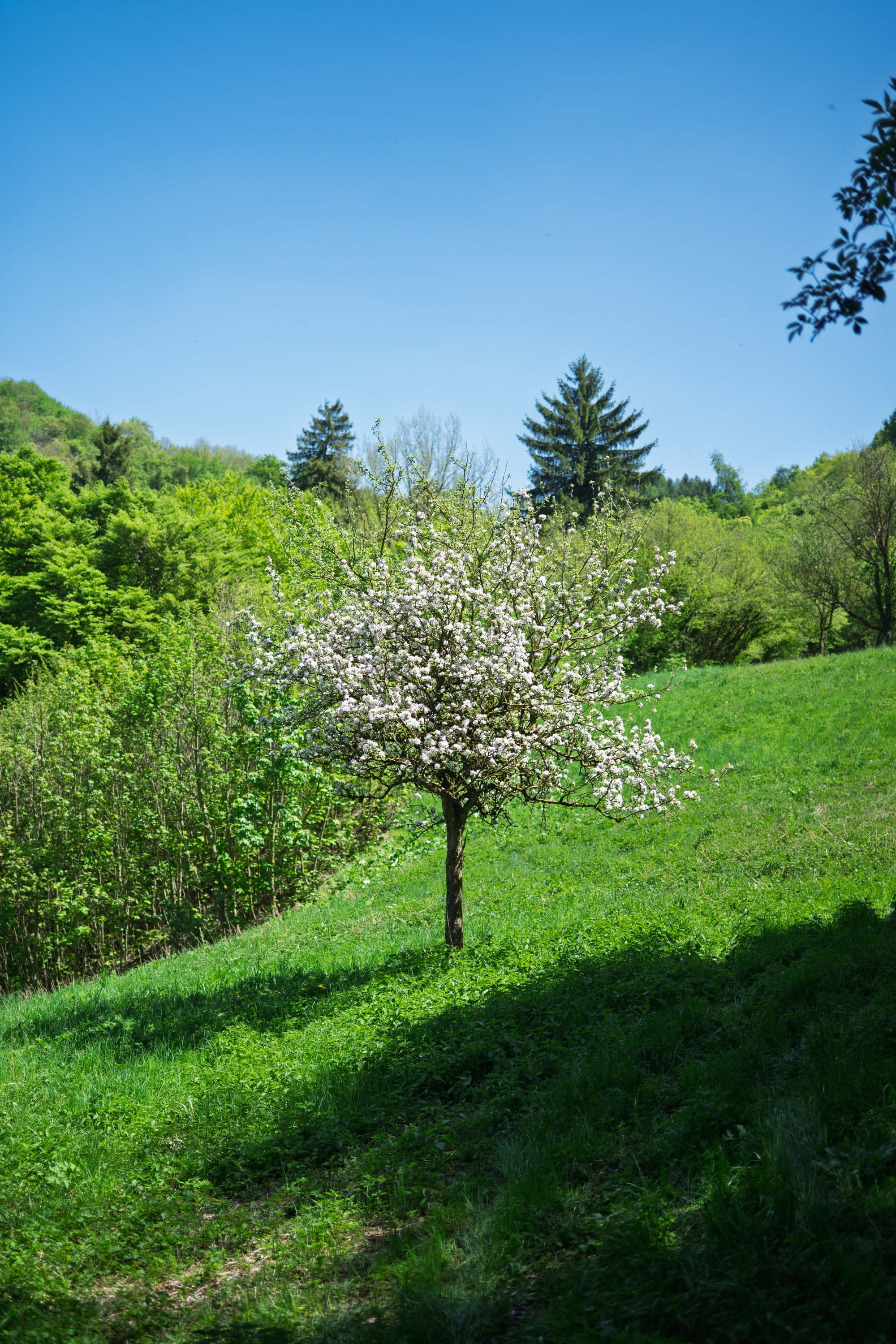 Nel mezzo di tutto questo verde, spunta un ciliegio in fiore solitario, che sembra lì per ricordarti che sì, la natura ha anche il senso dell’estetica. Una pausa all’ombra, uno snack, due pensieri ad alta voce e via, si riprende il sentiero.